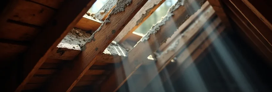 Le troisième stade représente le point de non-retour. Au-delà de douze mois d’exposition, les matériaux ont perdu leur intégrité structurelle. Le bois de charpente présente une perte de résistance mécanique dépassant 50%. Les risques d’effondrement localisé deviennent réels, particulièrement sous charge de neige ou lors de vents forts. Les signes d’alerte critiques incluent un bois qui s’effrite au toucher, des fissures longitudinales dans les poutres, un affaissement visible du plafond et une odeur persistante de décomposition. Le remplacement complet des éléments structurels devient obligatoire.